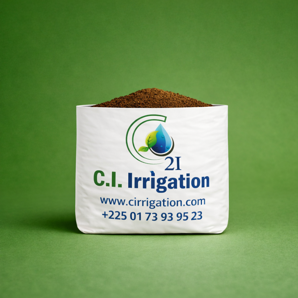 Souple et durable (géotextile), drainage & aération optimaux, **100% compatible goutte-à-goutte**. Disponible à Abidjan (Angré 22e, près de la CEI).